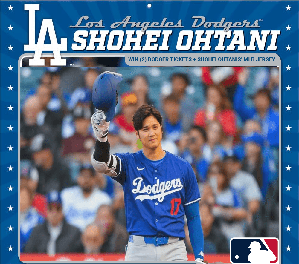Grand Prize: One lucky winner will receive two Los Angeles Dodgers tickets to a regular-season home game, plus a women’s large Shohei Ohtani official MLB jersey.
